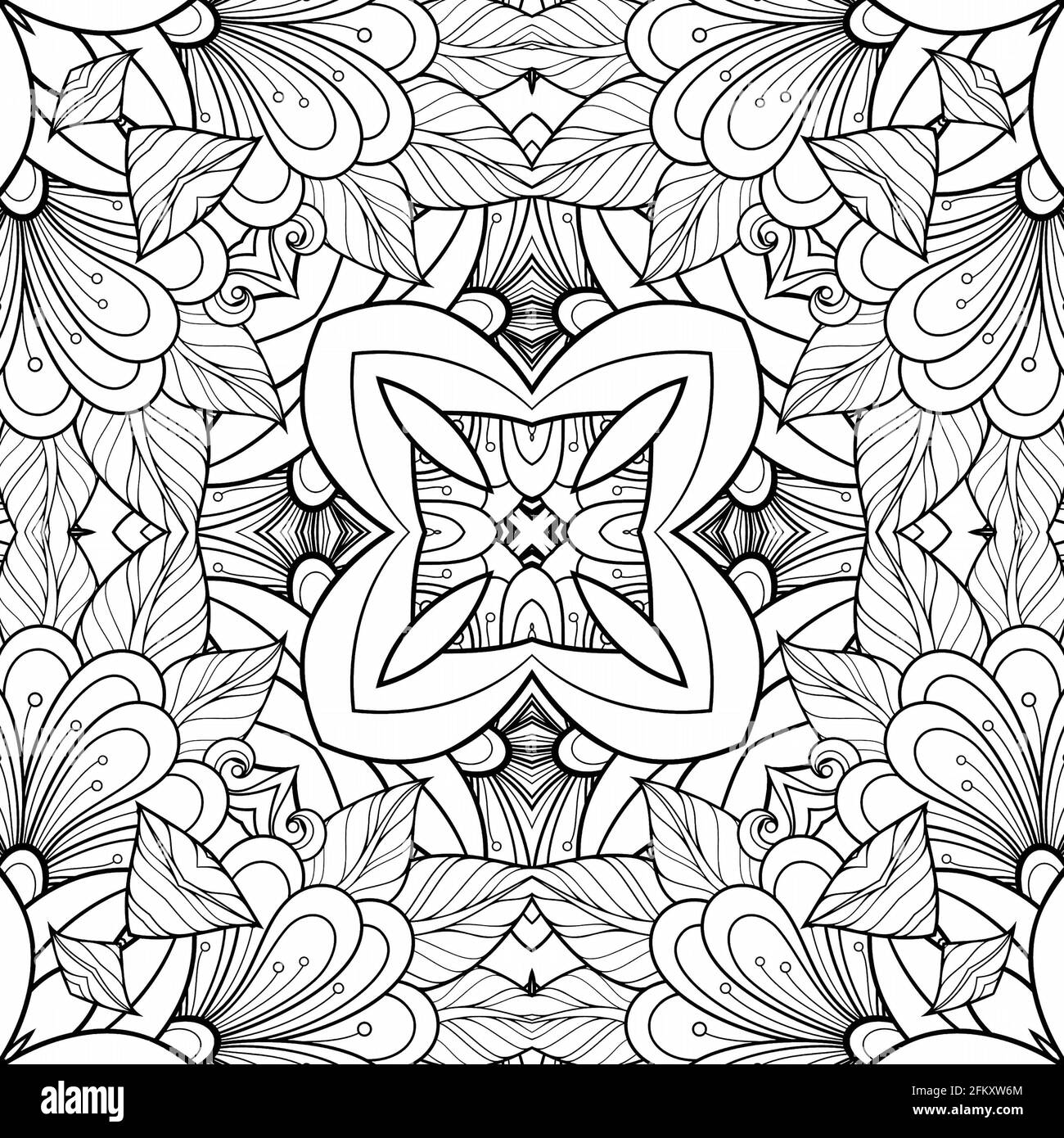 Black And White Pattern Coloring Flowers And Leaves Geometric Beautiful Background Paper Plant Coloring Book Stock Photo Alamy
